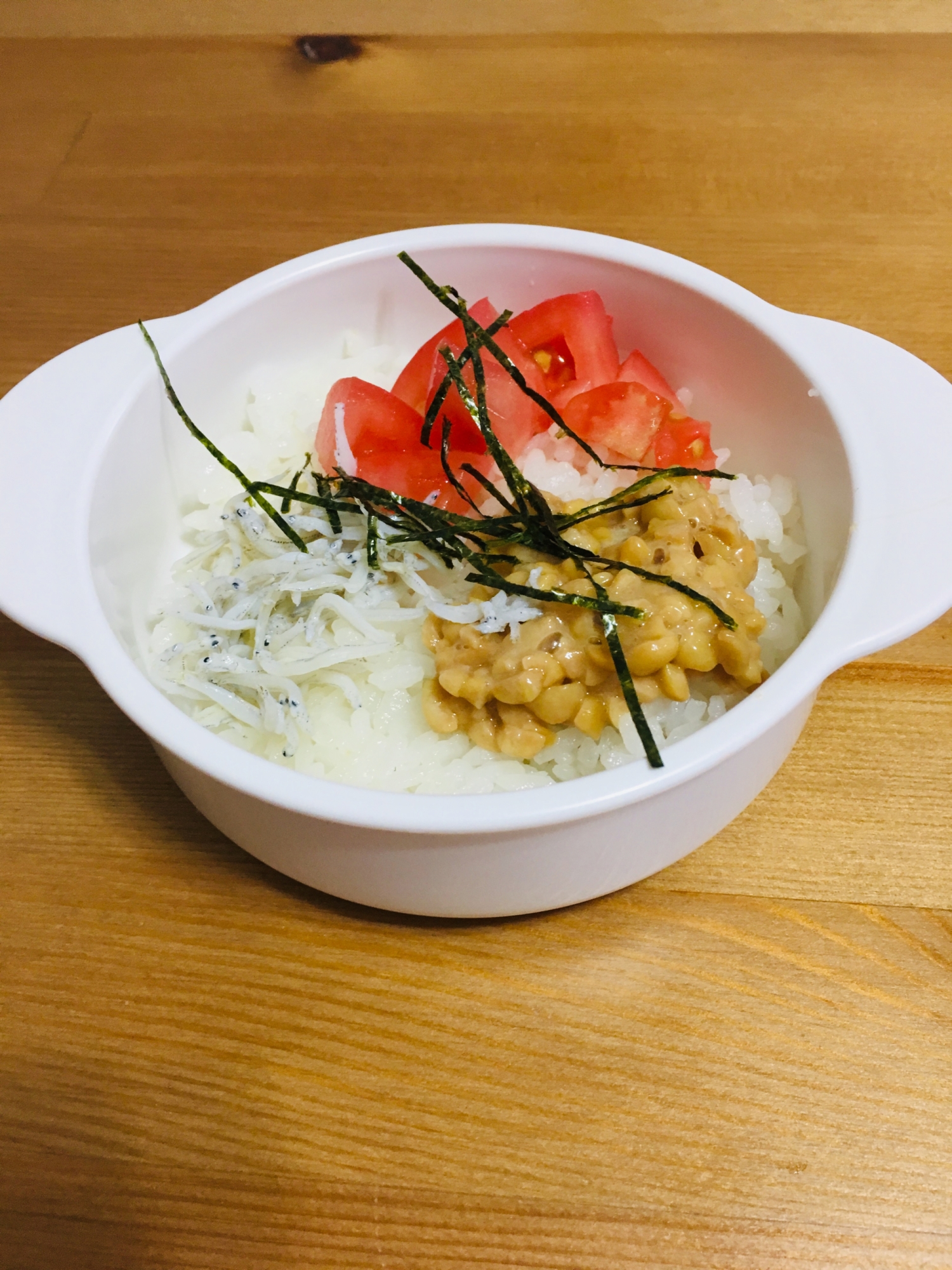 2歳の朝食 トマトと納豆としらす丼 レシピ 作り方 By Akim10 楽天レシピ